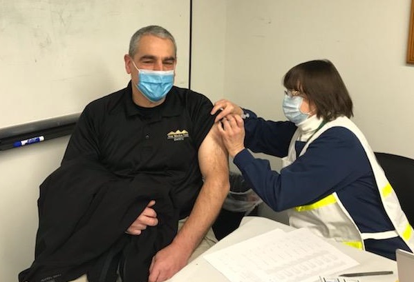 Sullivan County Public Safety Commissioner Rick Sauer receives his first dose of COVID-19 vaccine at Public Health Services in Liberty.